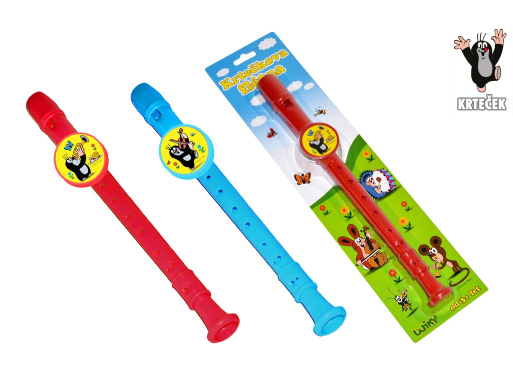 Krteček má moc rád muziku, zahrajte si s ním na jednoduchou dětskou flétnu. Vyráběna ve dvou barevných variacích - červená a modrá. Vyberte tu svou a hrajte. Délka flétny: 33 cm