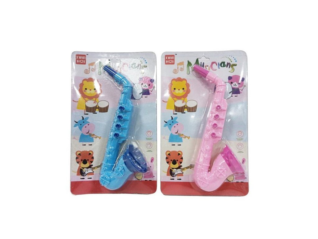 Saxofon. Velikost 27 cm. 2 varianty - modrá, růžová. Přesné rozměry 10x6x27 cm.