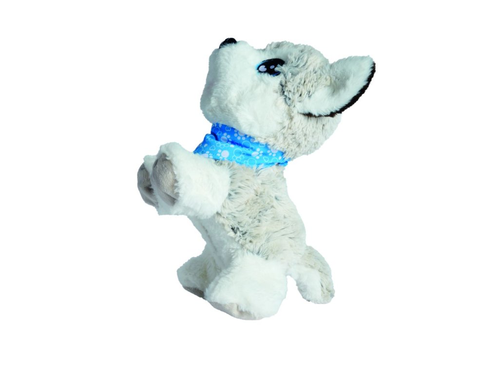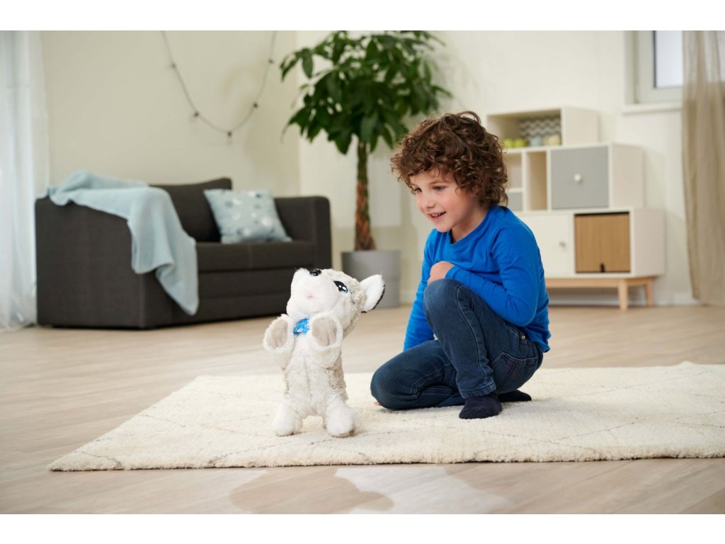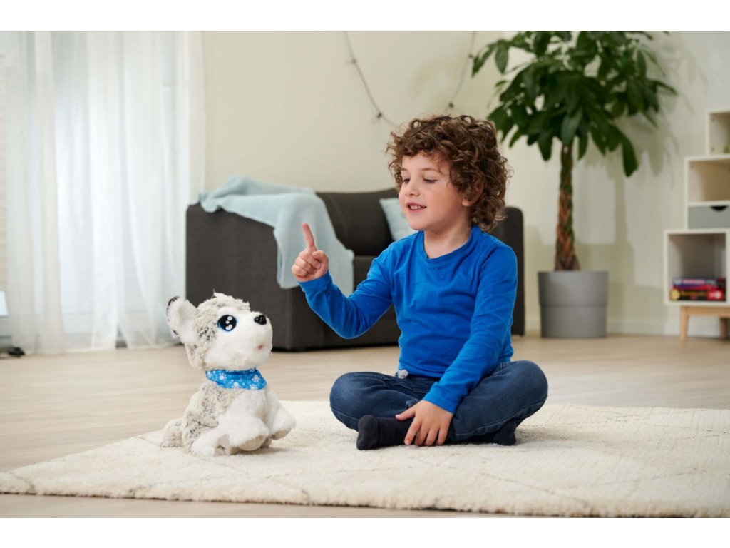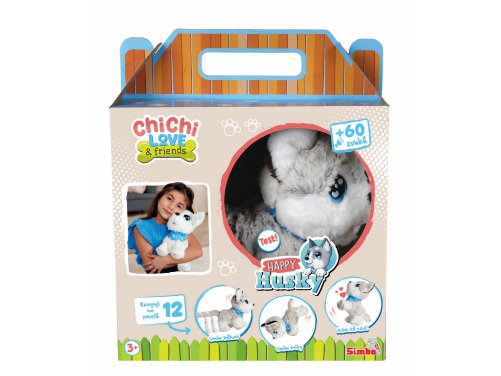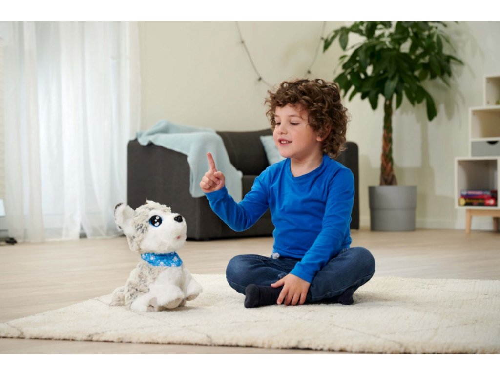 Interaktivní plyšový pejsek CCL Happy Husky umí poslouchat jako opravdový! Reaguje na 12 povelů v českém jazyce (popros, k noze, udělej stojku, hlídej, zatancuj, sedni, na zadní, hodný pejsek, pusinku, zazpívej, piškotek, kočička) a vydává 60 různých zvuků. Velikost 30 cm.