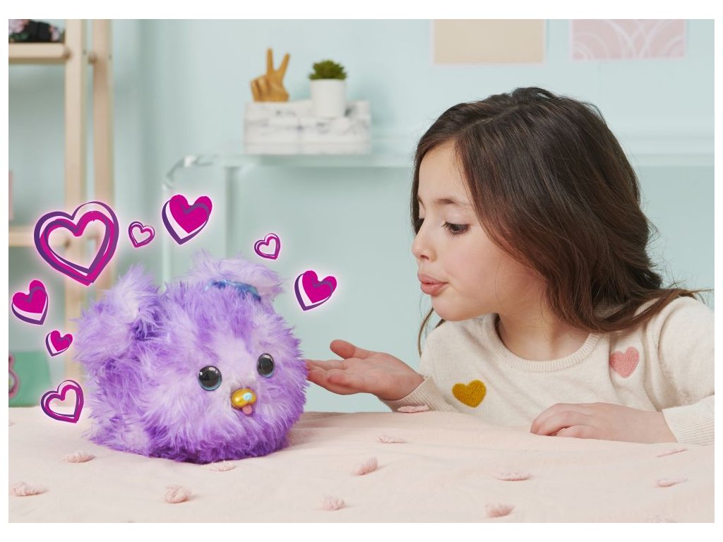 Roztomilé Štěňátko, které se pomocí hry odhalí z plyšové chlupaté kuličky o velikosti cca 20 cm. Máš spoustu možností interaktivní zábavy jako házení, koulení, krmení, písničky a hry. FurrFluffs má více než 50 zvuků a reakcí. Hračka je určena pro děti od 5 let