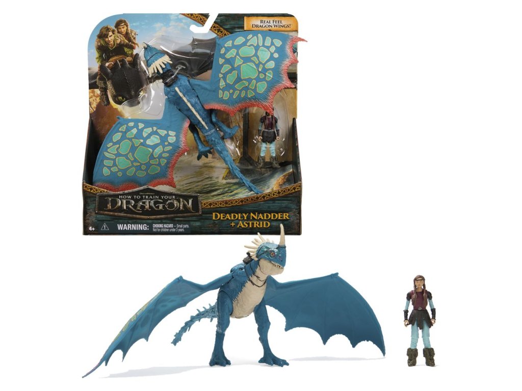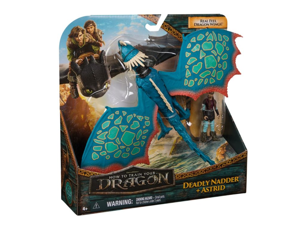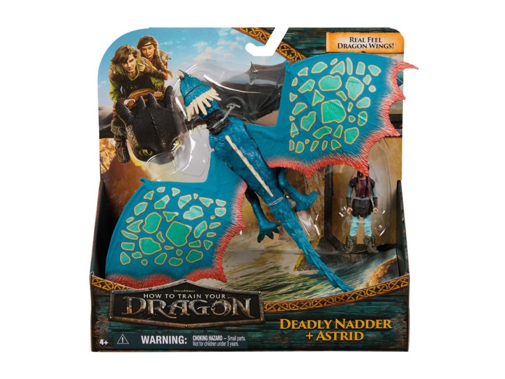 Balení obsahuje figurku draka a jeho vikinga stejně jako vystupují ve filmu. V tomto případě Smrťáka a Astrid.