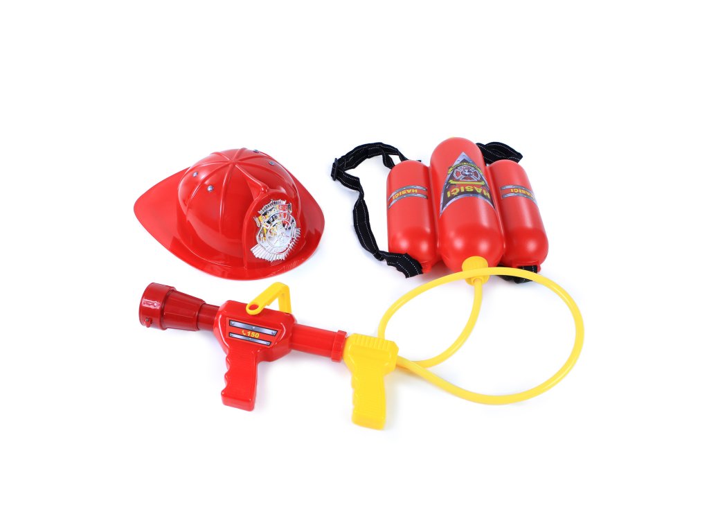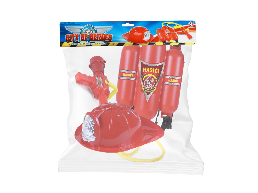 Zažijte opravdickou záchrannou akci díky této skvělé hasičské sadě! Nasaď si přilbu, naplň zásobník vodou, přišroubuj hadici a můžeš začít hasit!