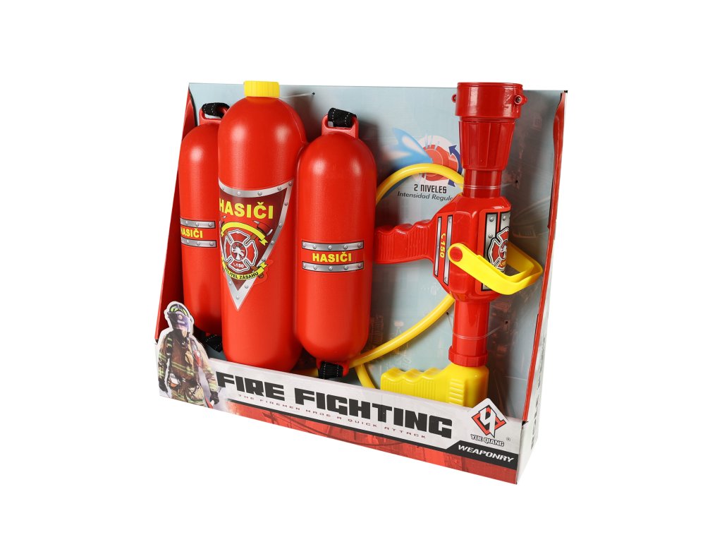 Zažij opravdickou záchrannou akci a využij k tomu tuto skvělou hasičskou sadu! Naplň zásobník vodou, přišroubuj hadici a můžeš začít hasit!