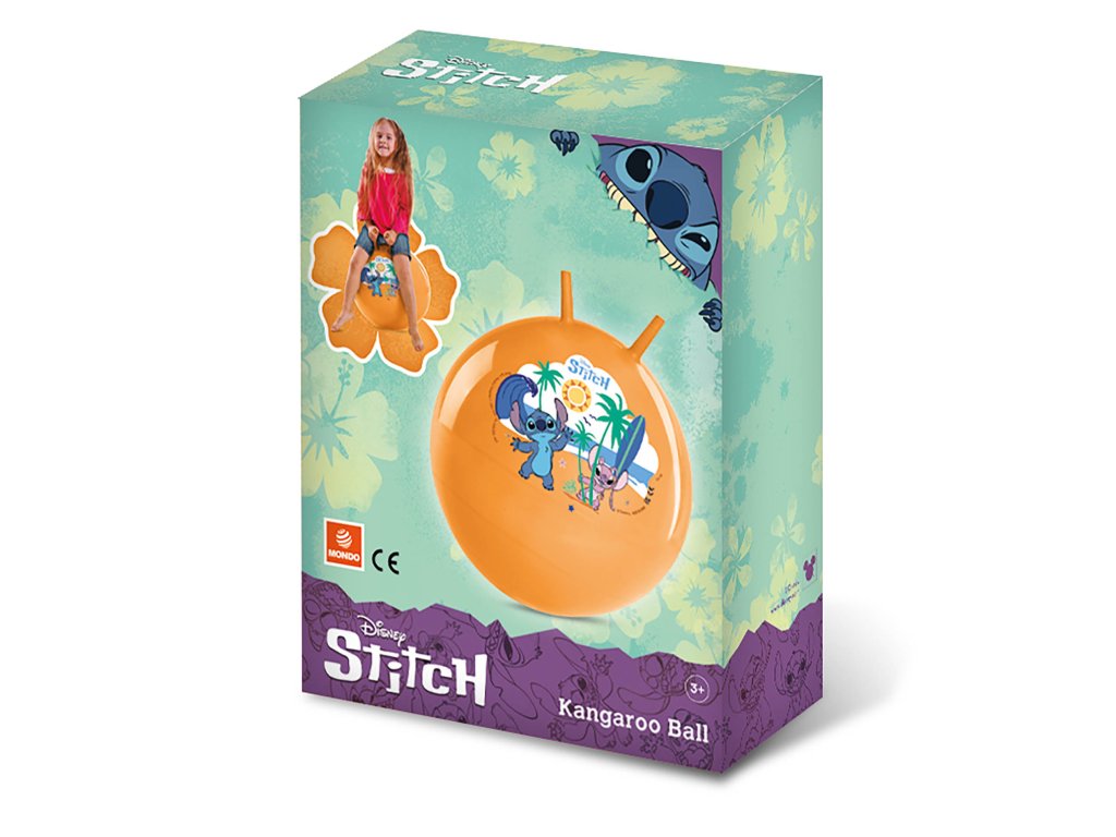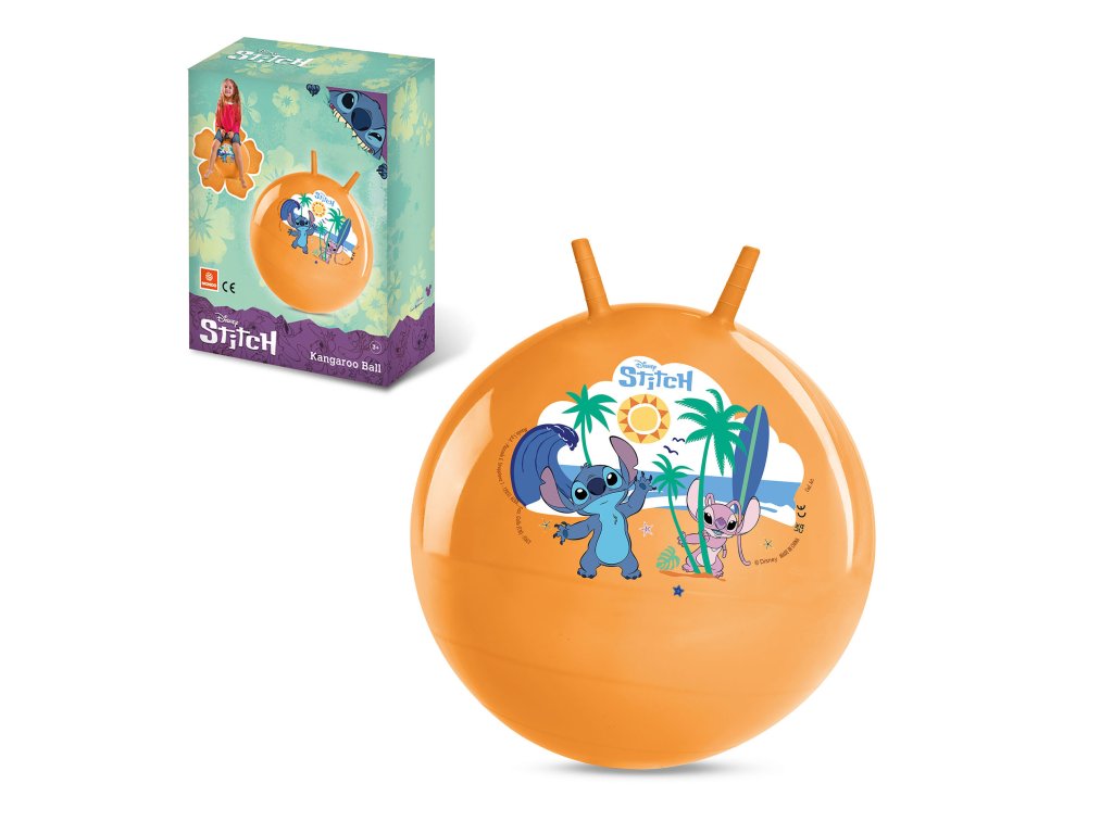 Skákací míč o průměru 45 - 50 cm s motivem STITCH. Skákací míč je určený pro zábavu, sport i posilování svalstva Vašich dětí. Dva gumové úchyty umožňují snadnou a bezpečnou kontrolu nad míčem. Pohyb na míči rozvíjí koordinaci pohybů a přispívá ke zdravému vývoji, bez nadměrné zátěže na pohybový aparát.