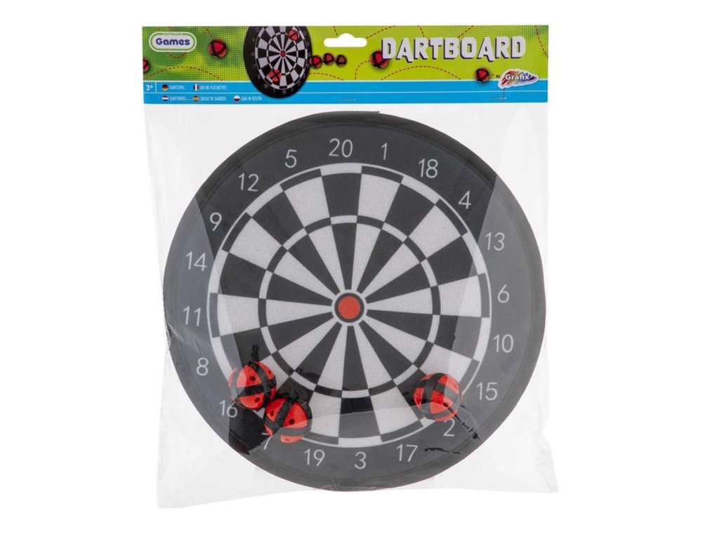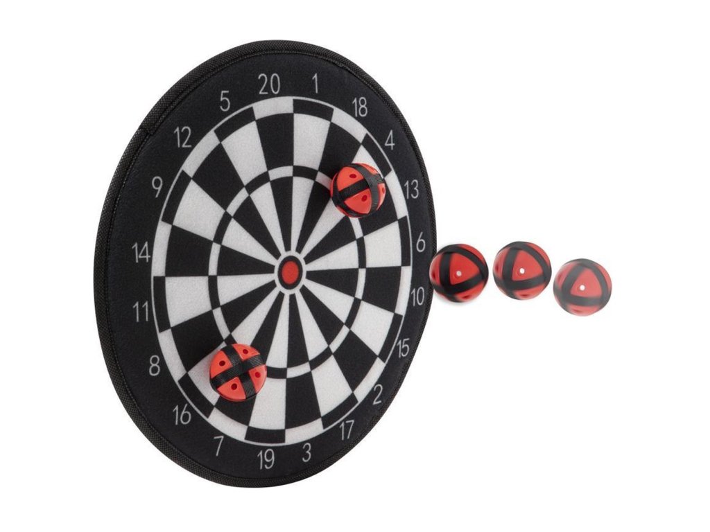Terč na suchý zip 29,5 cm se 3 míčky, baleno v sáčku, poutko na zavěšení. Zábavná hra pro děti i dospělé.