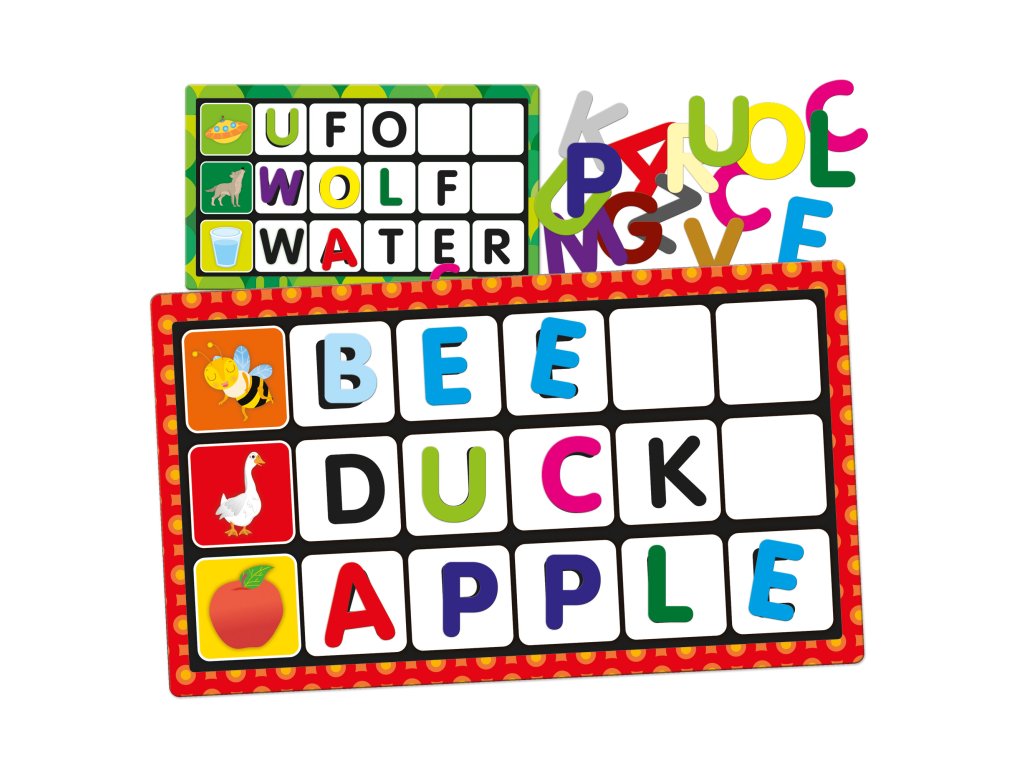 Díky doteku mohou děti rozeznat a vyndat malá písmenka ze sáčku a vytvořit kratší i delší slova. Vítězem je ten, kdo jako první správně vyplní svoji kartičku.