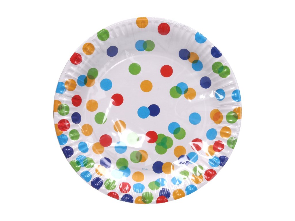 Papírové párty tácky TEČKY o velikosti 23 cm.