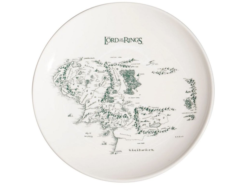 Keramický kuchyňský talíř s grafikou mapy Středozemí z populární filmové ságy Pán prstenů (Lord Of The Rings). Talíř je vhodným dárkem pro všechny fanoušky Pána prstenů.