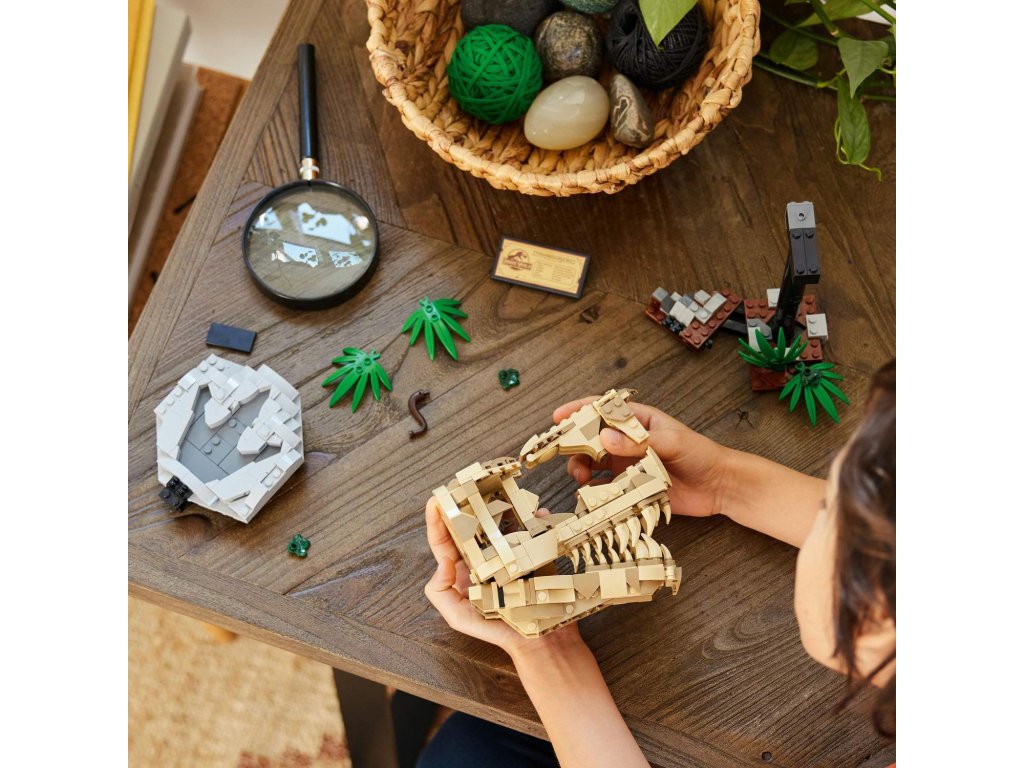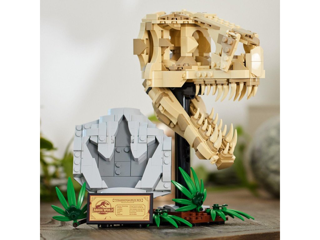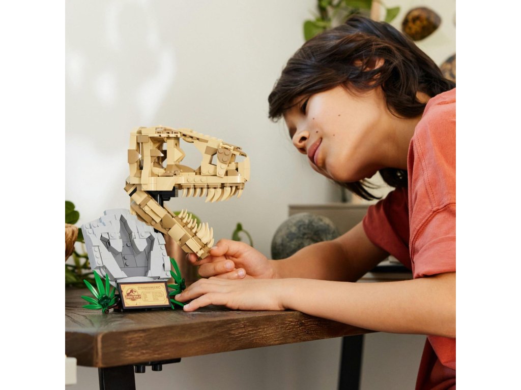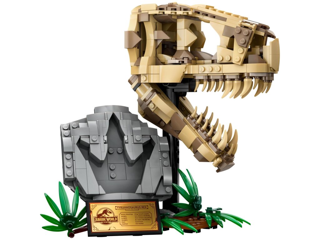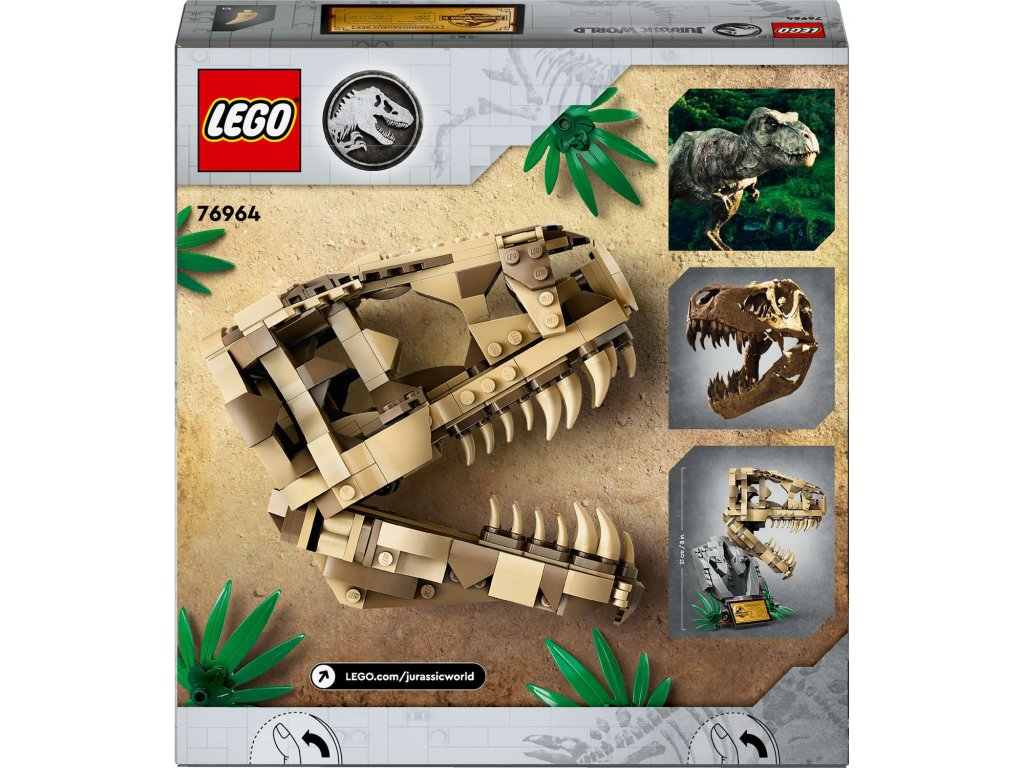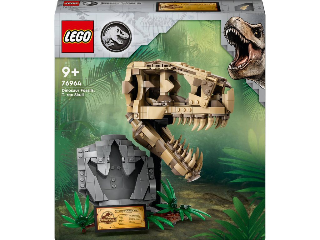 Stavebnice LEGO® Jurassic World (76964) Dinosauří fosilie: Lebka T-rexe je skvělý dárek pro děti od 9 let, které zbožňují dinosaury, a pro malé archeology. Středobodem této zcela první stavebnice z řady Jurassic World určené na výstavku je lebka s otevírací čelistí a nechybí ani podstavec s informační plaketou, ukrytý dílek „jantaru“ na zadní straně modelu a „zkamenělá“ stopa.