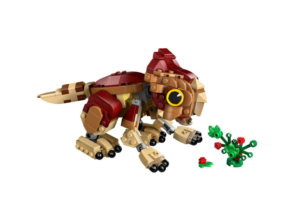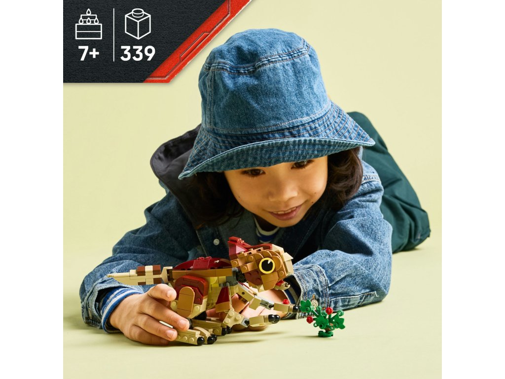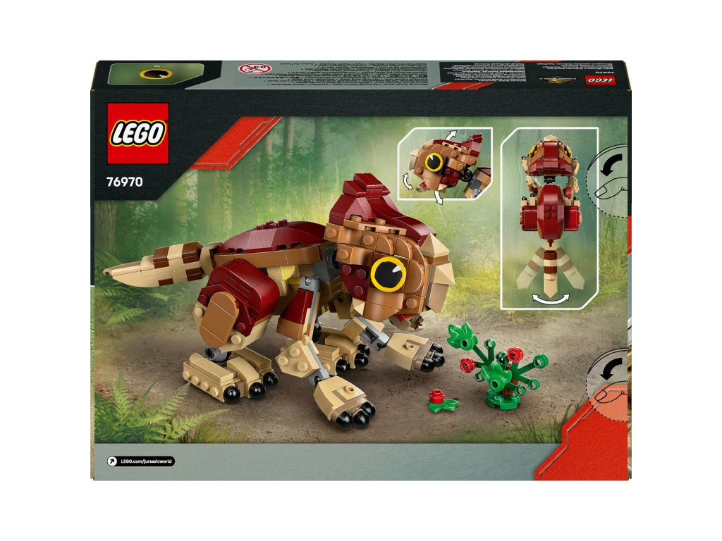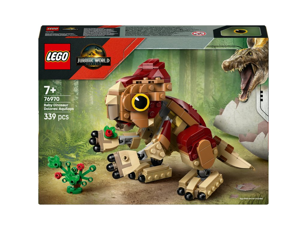 Děti a fanoušci od 7 let rozšíří svou sbírku dinosaurů a vydají se na dobrodružství se zábavnou stavebnicí LEGO® Jurassic World (76970) Dinosauří mládě Dolores: Aquilops. Tato výstavní stavebnice obsahuje figurku malého aquilopse z kostek a sestavitelnou rostlinu s květinami. Model mláděte Dolores má pohyblivou hlavu, ruce a nohy, díky kterým ji můžete libovolně napolohovat, a navíc pohyblivý ocas a otevírací čelist, kterou dává najevo potěšení, když si pochutná na rostlině. Jakmile hraní skončí, můžete si tento roztomilý model dinosaura umístit na polici nebo na stůl a pochlubit se jím.