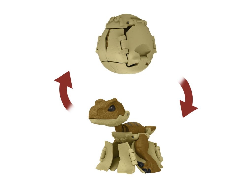 Připravte se na velké vzrušení a dobrodružství s Jurským světem! Tyto "dinosauří vejce" se v 5 snadných krocích promění na figurky dinosaurů o rozměrech přibližně 8 cm na délku a 7 cm na výšku! V této řadě mohou děti najít 4 různé druhy dinosaurů včetně T-Rexe, Velociraptora, Indomina rexe a Dilophosaura v různém provedení. Představuje skvělou hračku pro malé děti od 4 let. Každý se prodává samostatně v závislosti na dostupnosti. Barvy a vzhled výrobku se mohou lišit.