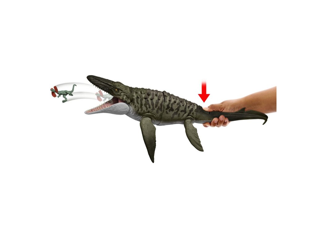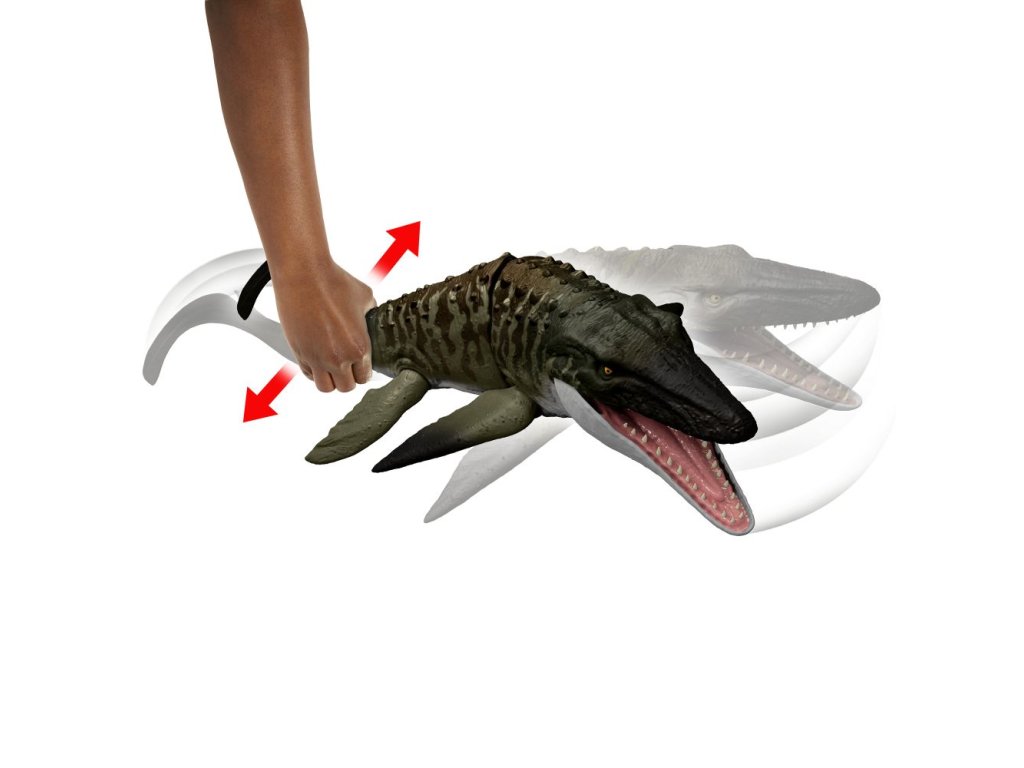 Jurský svět ožívá! Přineste si domů napětí a dobrodružství s unikátním Mosasaurusem inspirovaným filmem. Figurka měří 65 cm, má pohyblivé ploutve a ocas a nabízí akční funkce „Kousni a vystřel“. Děti mohou snadno uchopit ocas a stisknout tlačítko, čímž otevřou mohutnou čelist připravenou „kousnout“ a spolknout mini figurku Dilophosaura. Stisknutím znovu Mosasaurus kořist „vystřelí“ z tlamy ven. Skvělý dárek pro všechny fanoušky dinosaurů od 4 let!