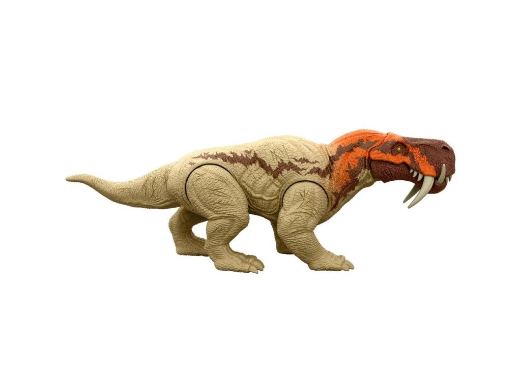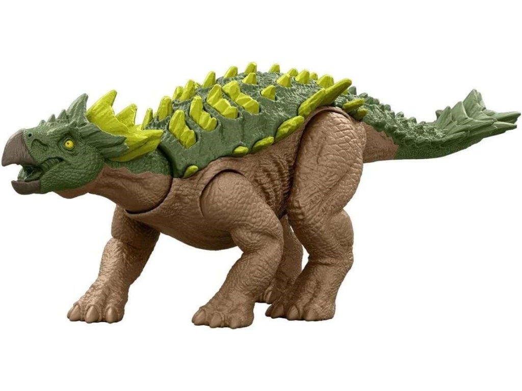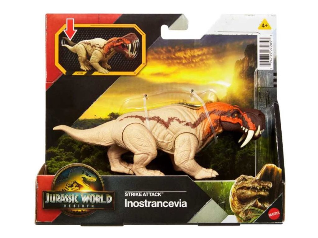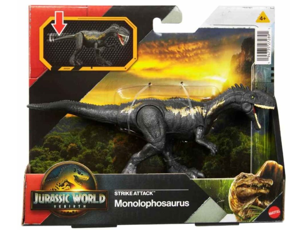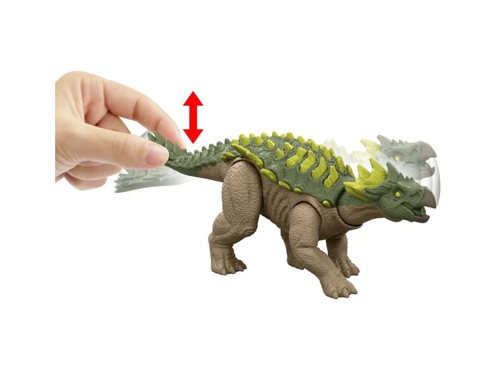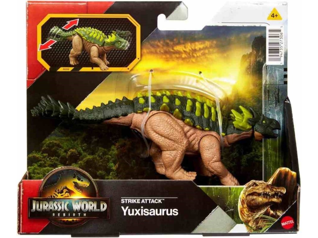 Tyto akční figurky dinosaurů z Jurského světa Dinosaurus útočí mají jeden úderný prvek, který demonstruje největší sílu každého druhu, pohyblivé klouby, realistické zpracování a autentické zdobení, a měří přibližně 10 až 13 cm na výšku a 18 až 20 cm na délku. Rozšířená digitální hra je k dispozici po naskenování jejich DNA tagu ve vylepšené aplikaci Jurassic World Facts. Každá se prodává samostatně, podle dostupnosti.