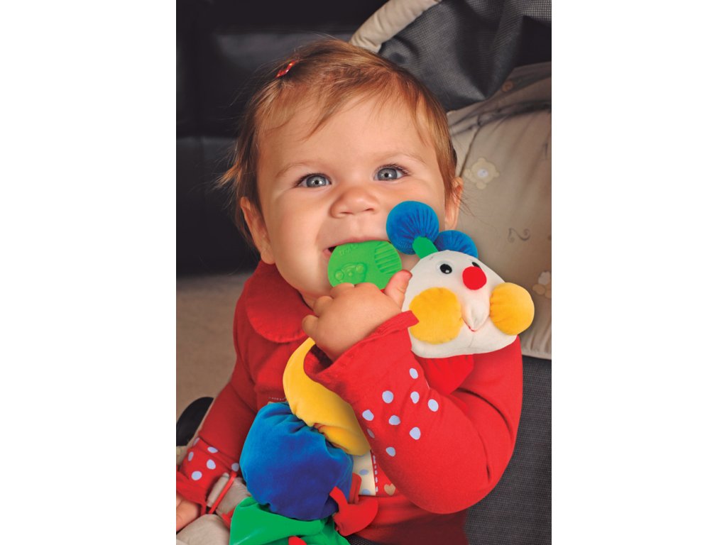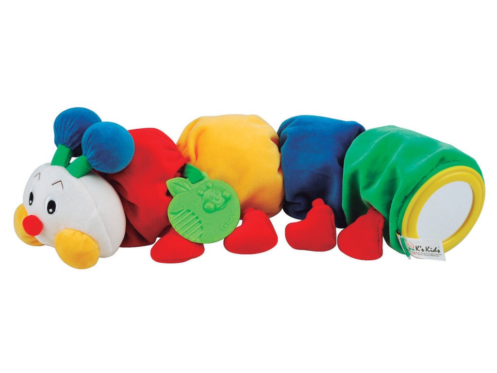 Látková stonožka, kterou mohou děti objímat je vybavena i plastovým kousátkem na prořezávání prvních zoubků. Na zadečku má zrcátko. Věk: 3m+