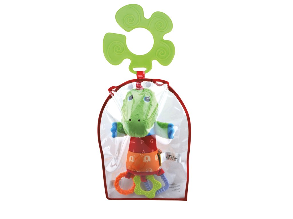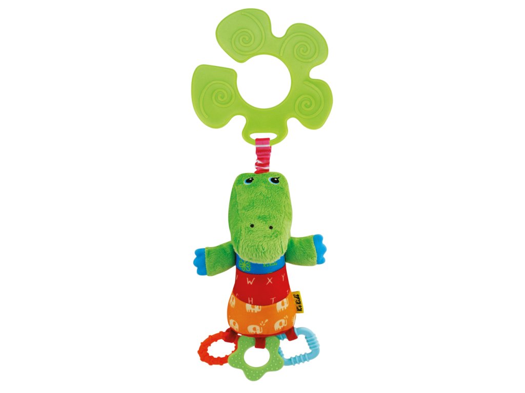 Krokodýl k zavěšení na kočárek nebo postýlku je vhodný již od raného dětství, kdy díky tomu, že je ušitý z různých materiálů, podporuje vizuální hmatové i sluchové vjemy dítka. Při pohmatu šustí a chrastí a zároven dítě vnímá hmatem různé typy povrchů.