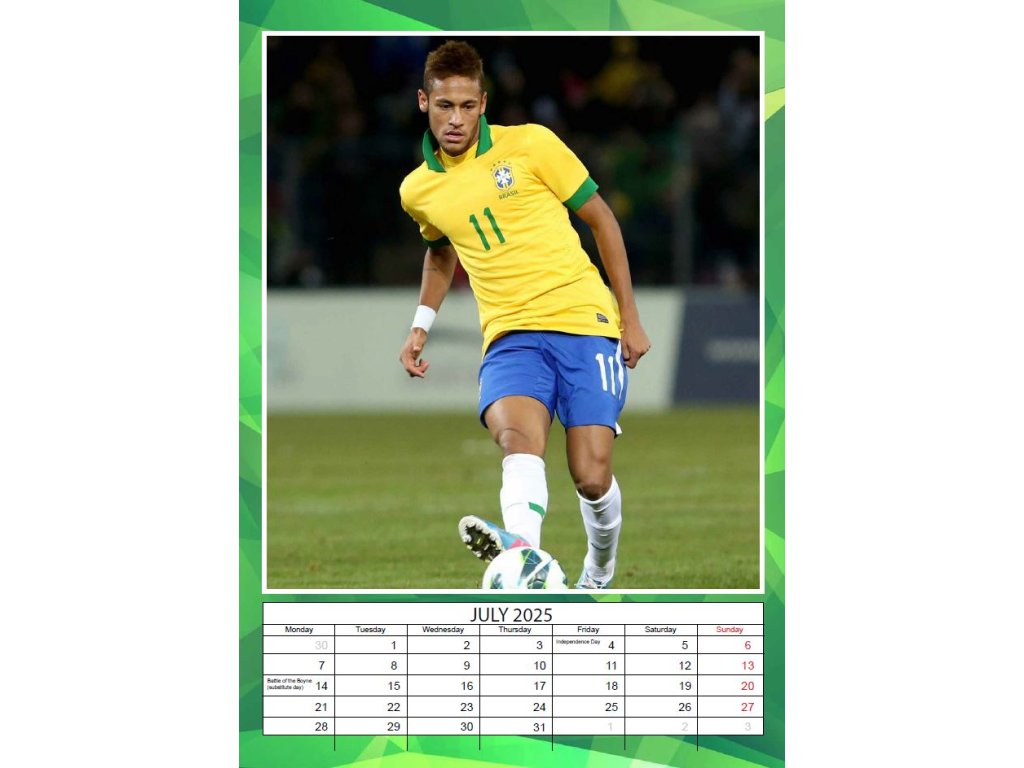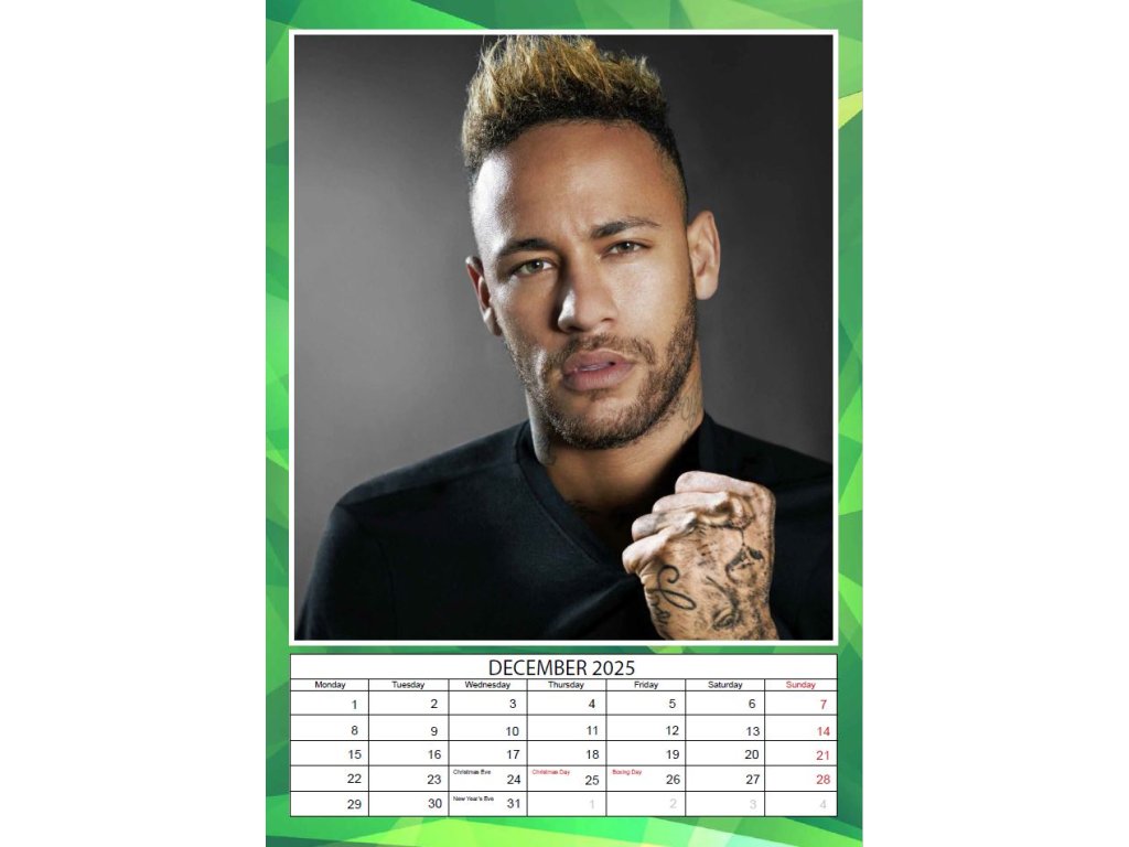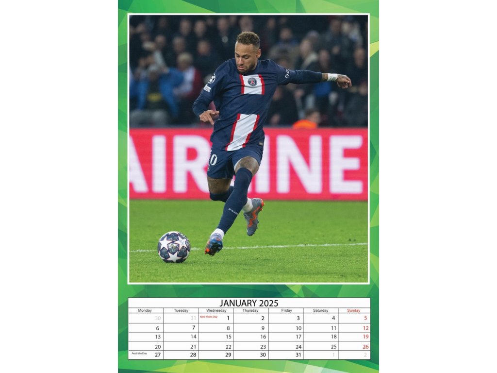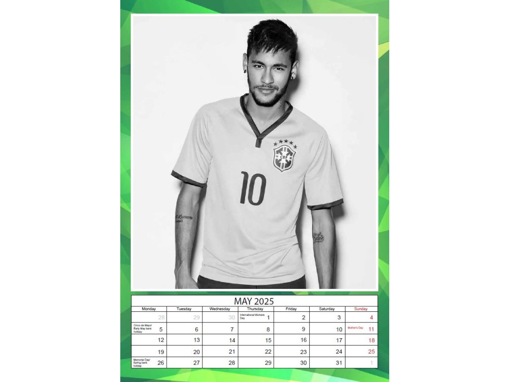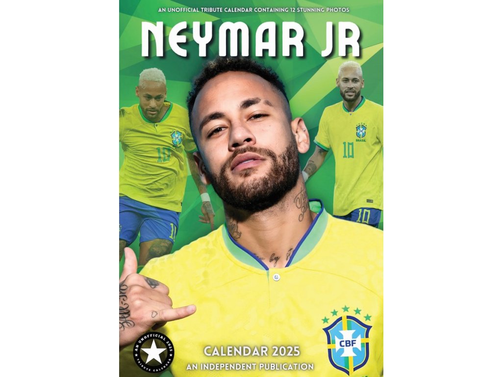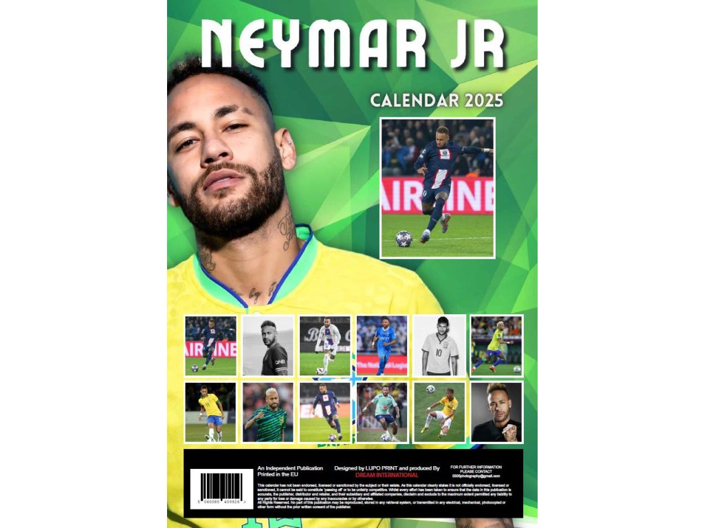 Oficiální nástěnný dvanáctiměsíční kalendář fotbalisty Neymar na rok 2025.
