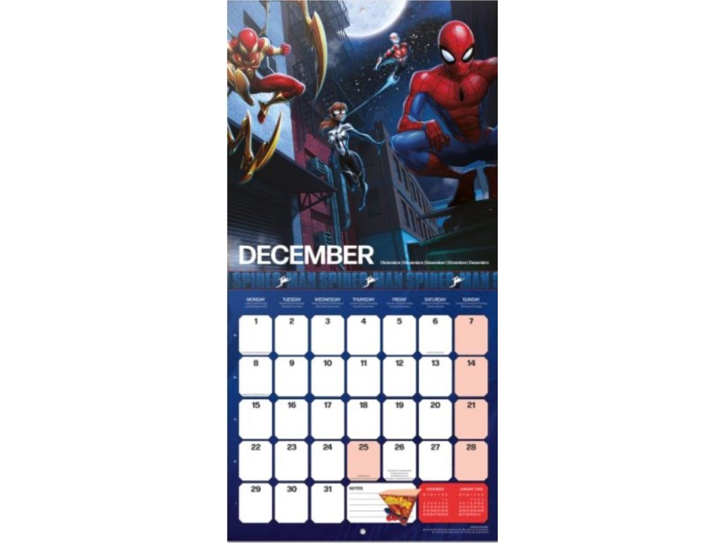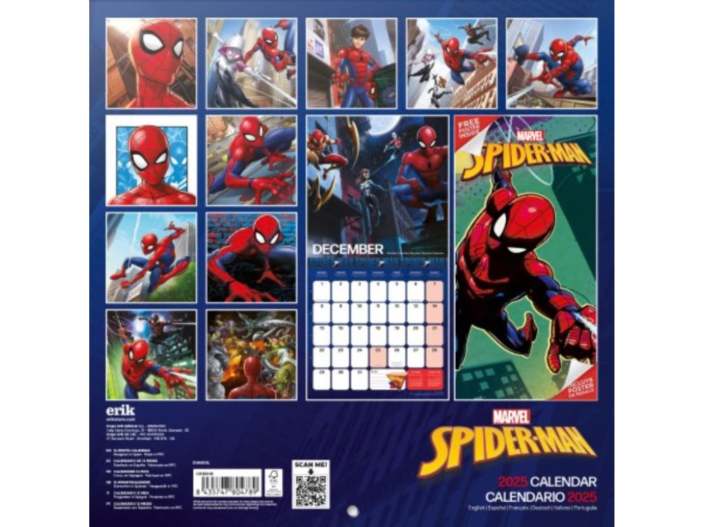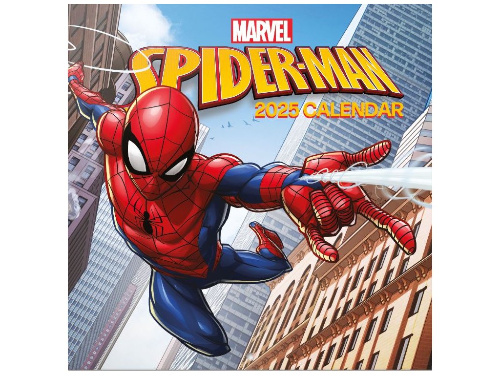 Oficiální nástěnný kalendář na 12 měsíců roku 2025 s komiksovou licencí Spiderman vydavatelství Marvel Comics.