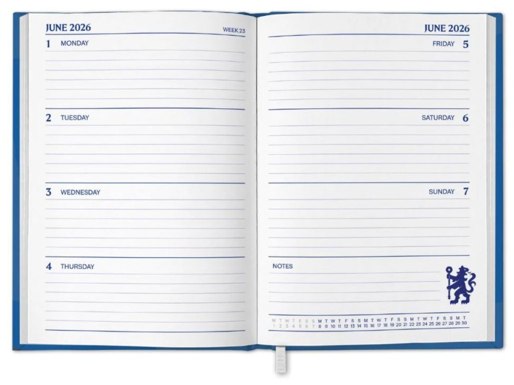 Dárkové balení v krabici, která při otevření hraje hymnu FC Chelsea. Balení obsahuje kalendář a diář s propiskou na rok 2026. Máte doma fanouška fotbalového klubu Chelsea? Poté je tato dárková sada, která je krásně prezentována v hrající krabičce ten nejlepší dárek pod vánoční stromeček!