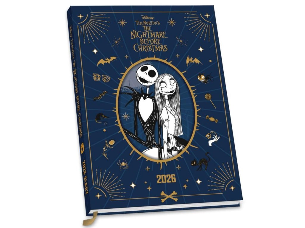 Oficiální produkt - exklusivní dárkový set s kalendářem a diářem s propiskou na rok 2026 s licencí a grafikou animovaného muzikálu The Nightmare Before Christmas (Ukradené Vánoce).