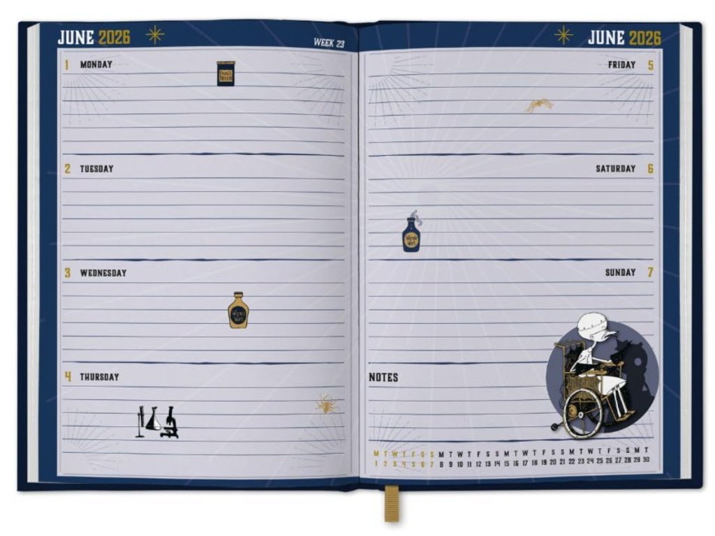 Kalendář má pro jednotlivé dny velké panely, které umožňují využívat kalendář jako diář a zaznamenávat do něj termíny schůzek, narozeniny nebo zapisovat další poznámky. Součástí je i plakát.