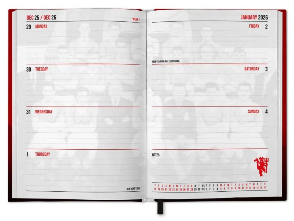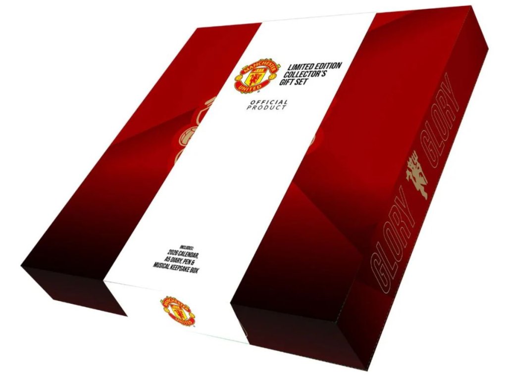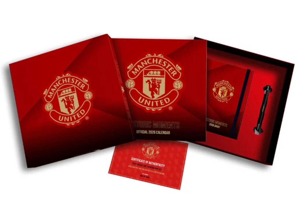 Dárkové balení v krabici, která při otevření hraje hymnu FC Manchester United. Balení obsahuje kalendář a diář s propiskou na rok 2026. Máte doma fanouška fotbalového klubu Manchester United? Poté je tato dárková sada, která je krásně prezentována v hrající krabičce ten nejlepší dárek pod vánoční stromeček!