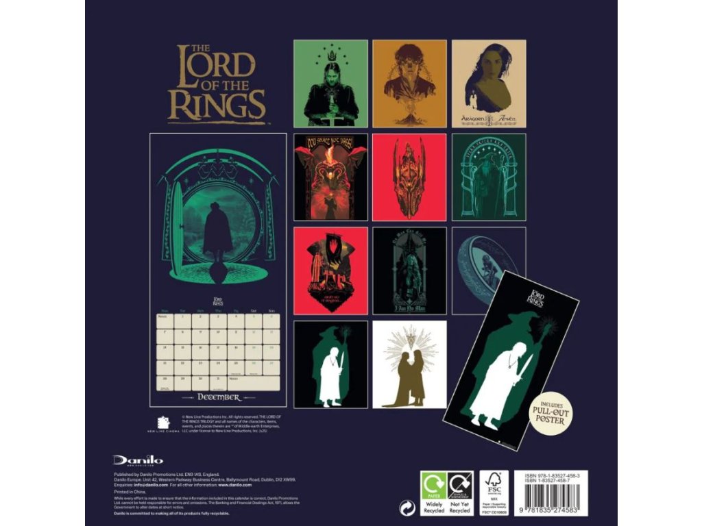 - Nástěnný kalendář čtvercového square formátu (30,5 x 30,5 cm) s celkem 12 fotografiemi a obrázky z filmů Pán prstenů. Součástí je i plakát.