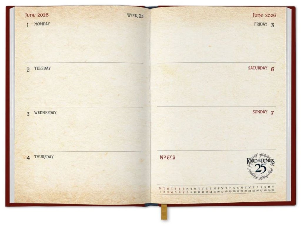Exklusivní dárek pro všechny milovníky filmů a knížek ságy Pán prstenů. Dárkové balení kalendáře a diáře na rok 2026 s propiskou.
