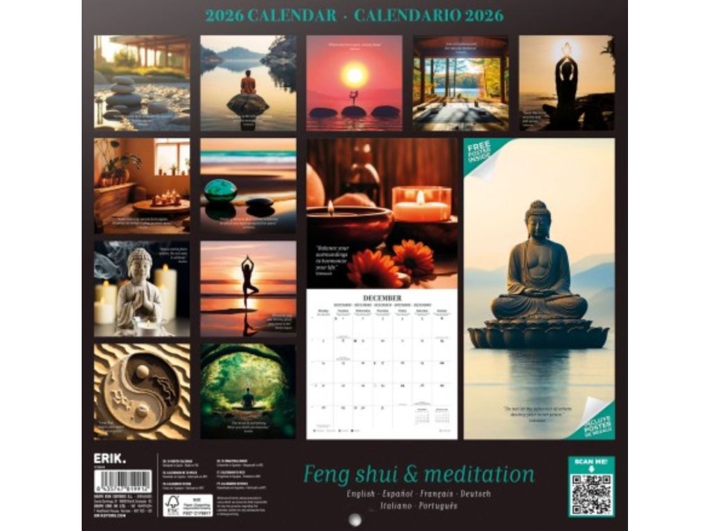 Oficiální nástěnný kalendář 2026: 16 měsíců Feng Shui meditace (30 x 30 | 60 cm)