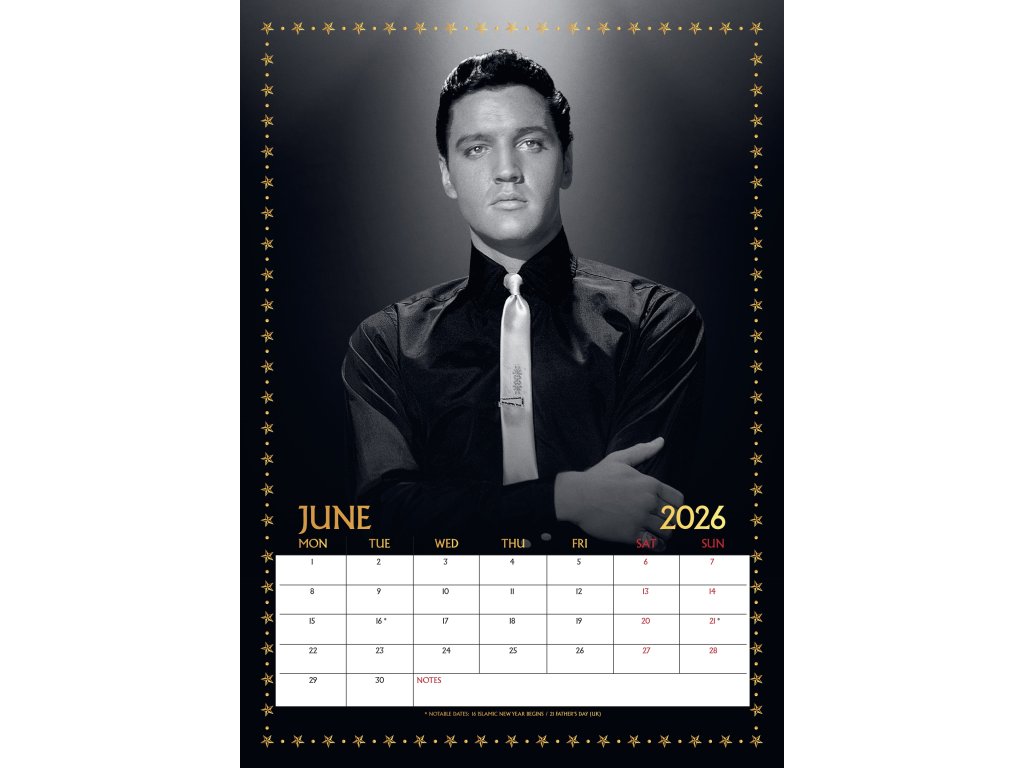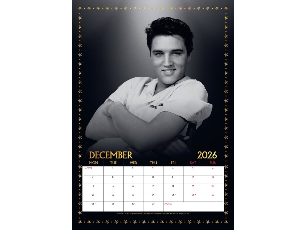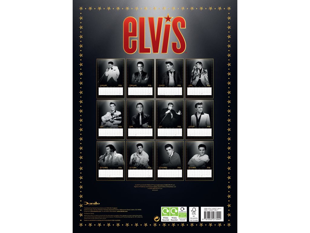 Oficiální produkt - nástěnný dvanáctiměsíční kalendář zpěváka Elvise Presleyho na rok 2026.