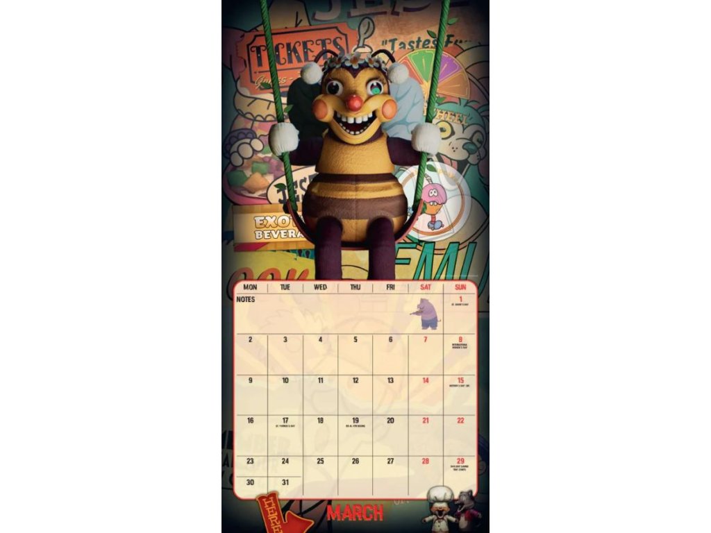 Oficiální produkt - nástěnný dvanáctiměsíční kalendář inspirovaný hororovou hrou Five Nights at Freddy's (Pět nocí u Freddyho).