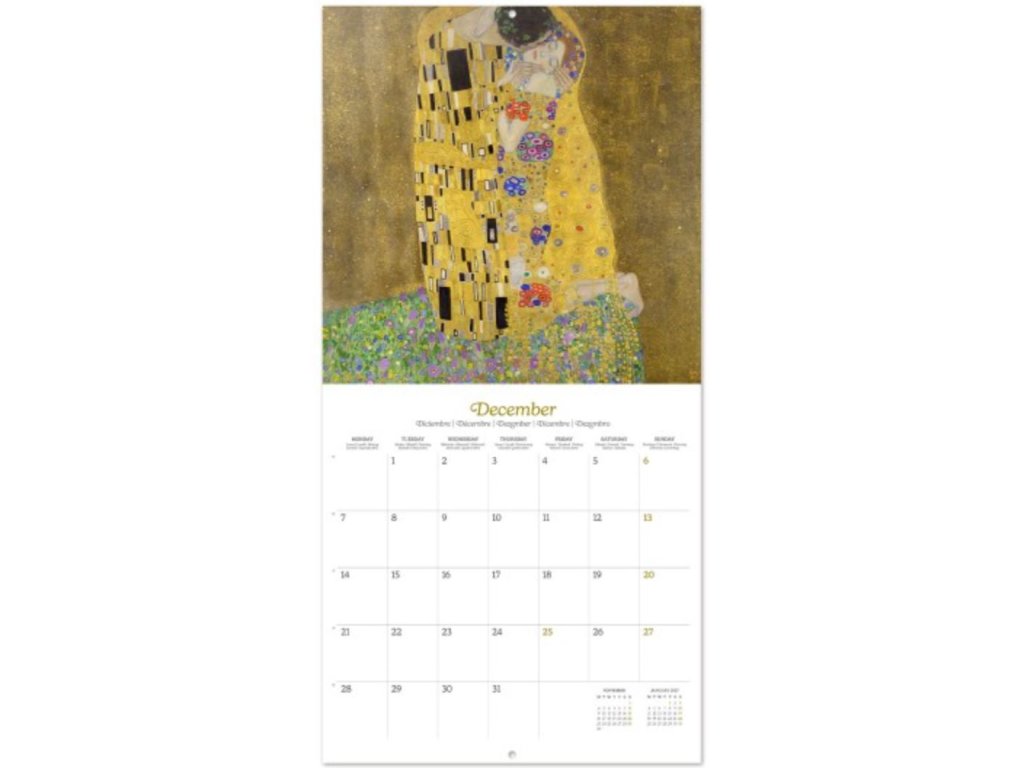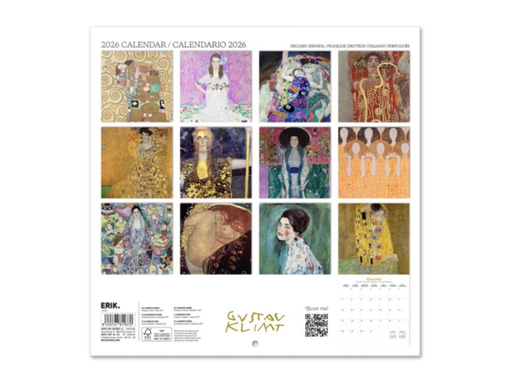 Oficiální produkt - nástěnný kalendář na 12 měsíců a rok 2026 s licencí na fotografie obrazů Gustava Klimta.
