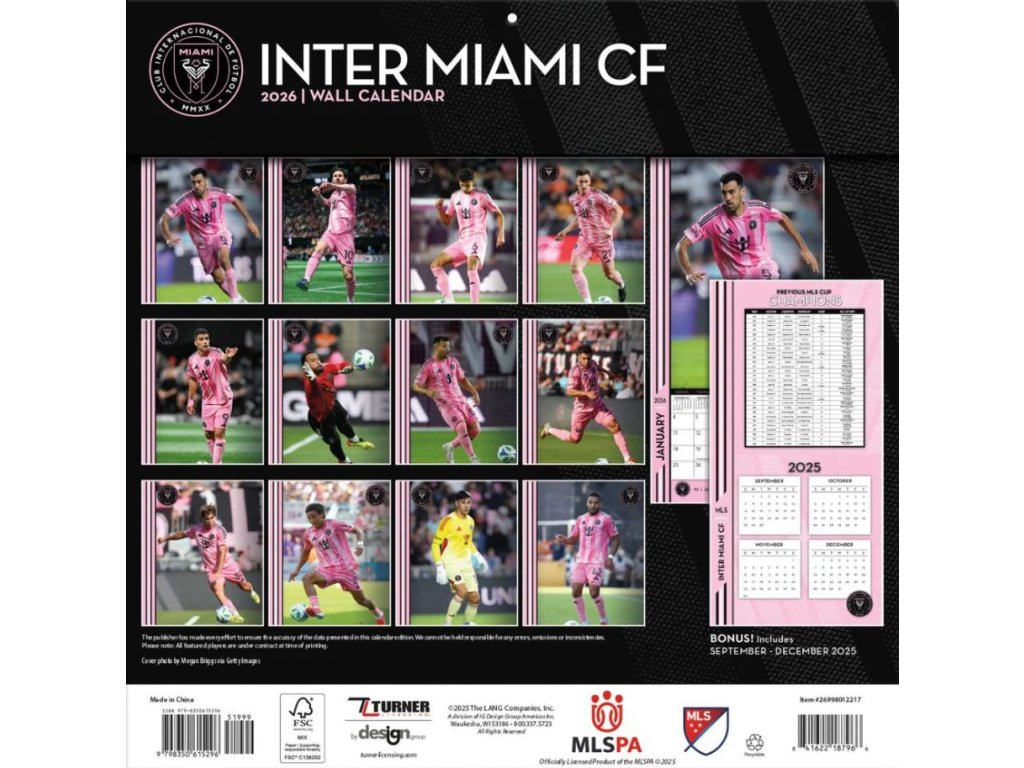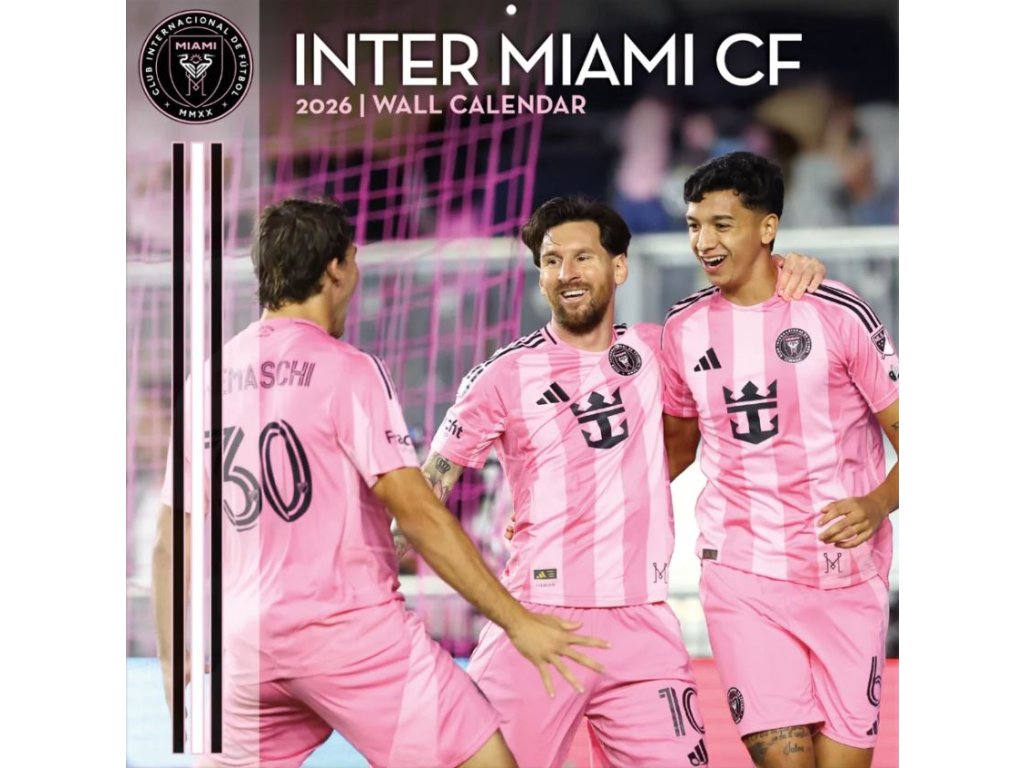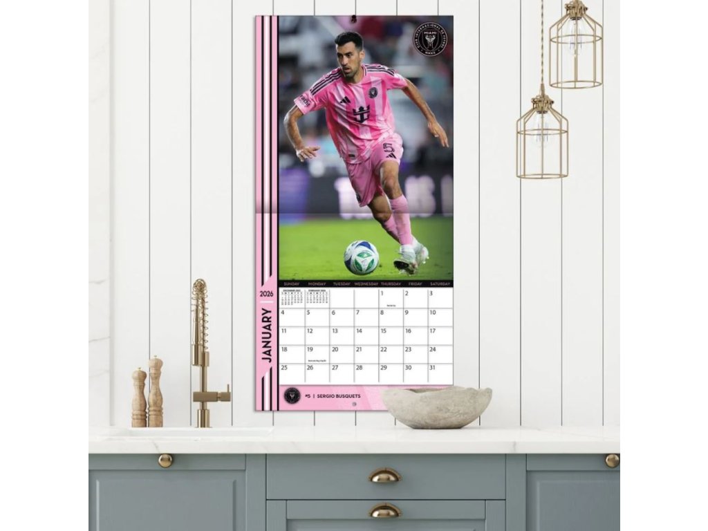 Oficiální nástěnný dvanáctiměsíční kalendář na rok 2026 s licencí amerického fotbalového týmu Inter Miami CF.
