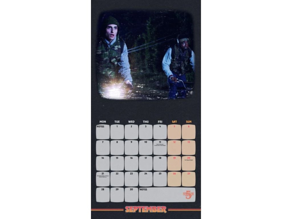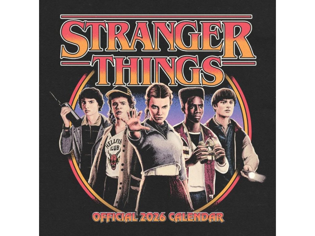 Oficiální produkt - kalendář na rok 2026 z katalogu výrobků s licencí a grafikou oblíbeného seriálu Stranger Things od streamovací společnosti Netflix.