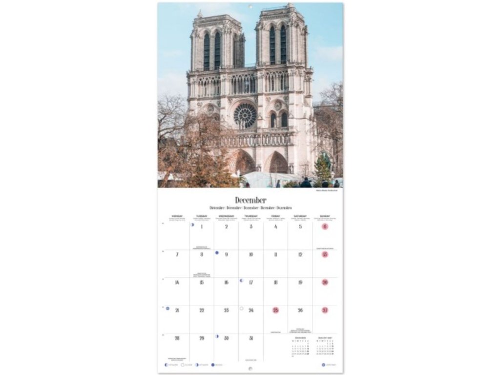 Dvanáctiměsíční nástěnný kalendář čtvercového square formátu (30 x 30 cm) s celkem 13 fotografiemi města Paříž.