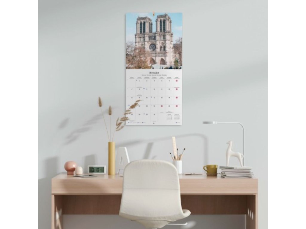 Oficiální produkt - dvanáctiměsíční nástěnný kalendář na rok 2026 s fotografiemi z města Paříž.