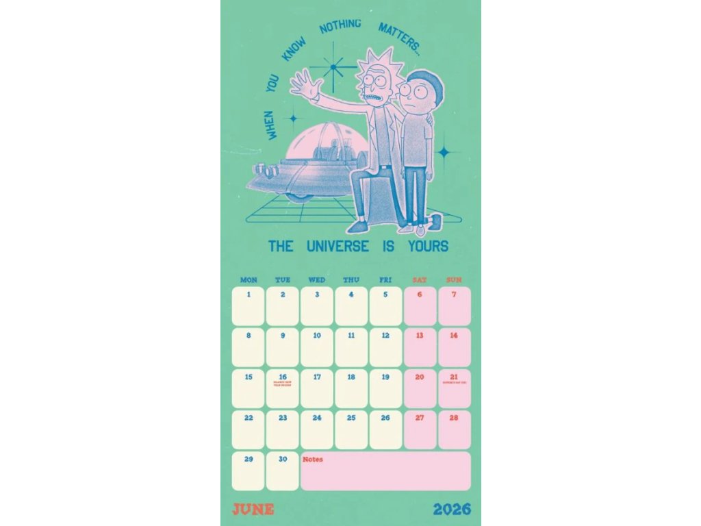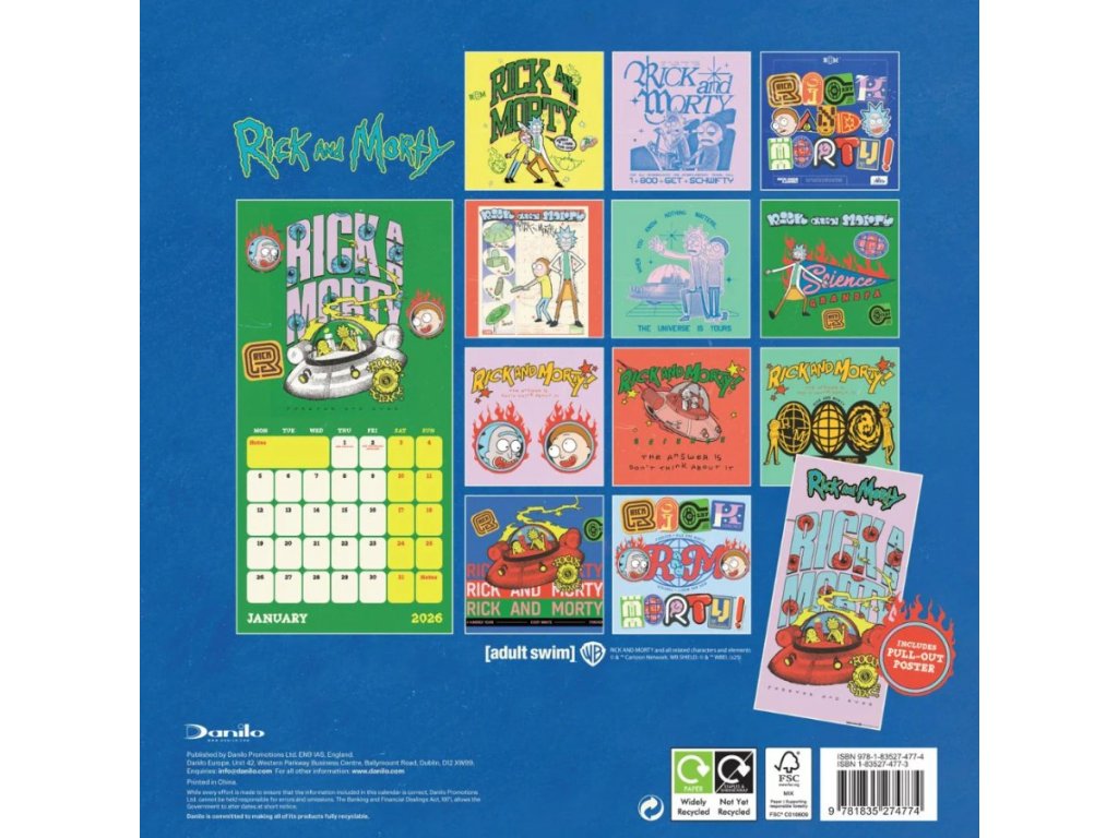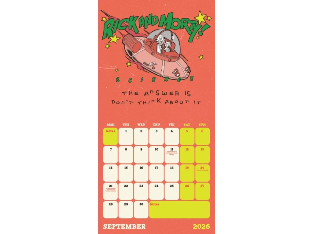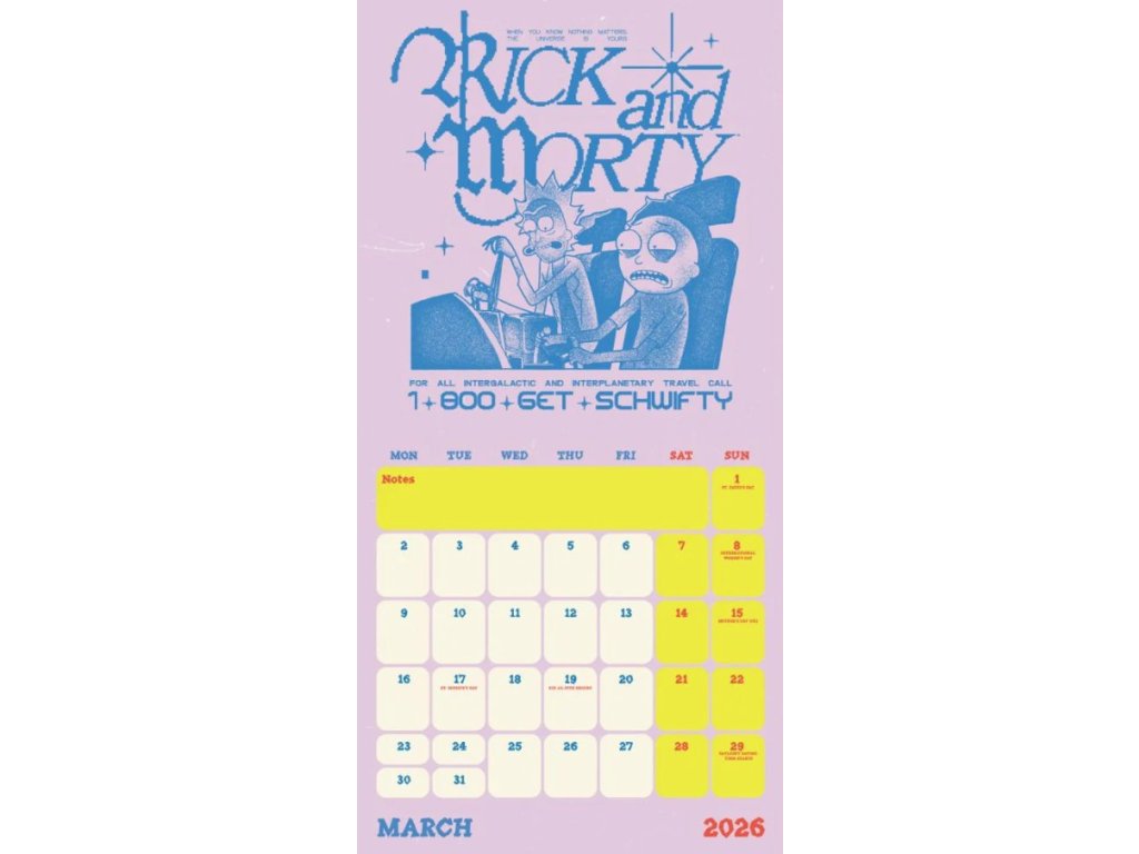 Oficiální produkt - nástěnný dvanáctiměsíční kalendář animovaného televizního seriálu Rick and Morty na rok 2026.