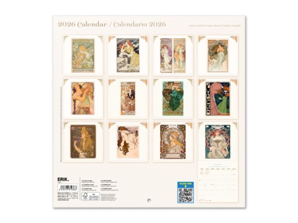 Oficiální produkt - art kalendář z katalogu zboží na 12měsíců na rok 2026 s obrázky umělců secese.