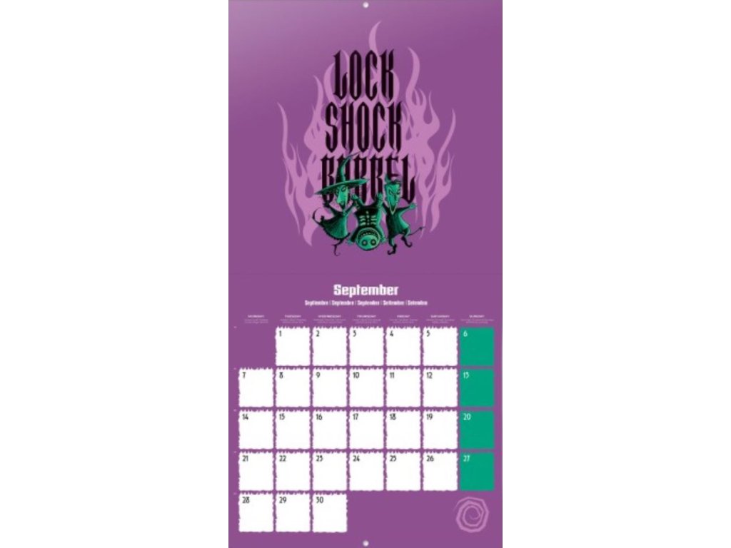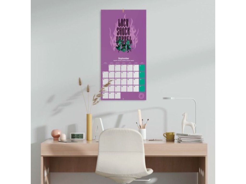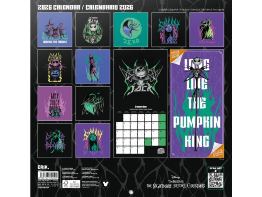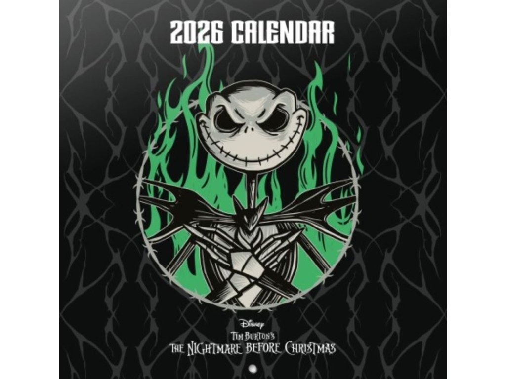 Oficiální nástěnný kalendář na rok 2026 z katalogu s grafikou a licencí amerického loutkového muzikálu The Nightmare Before Christmas (Ukradené Vánoce) od společnosti Disney.