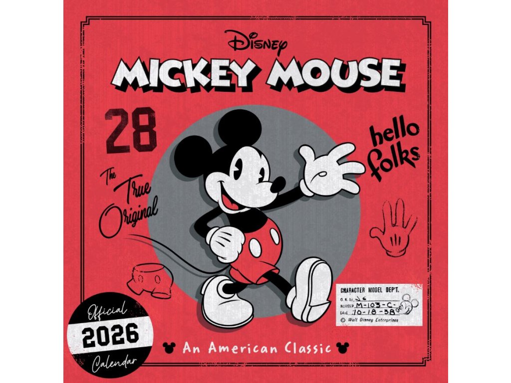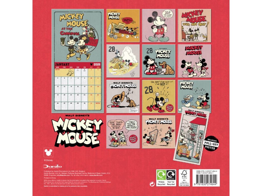 Oficiální nástěnný kalendář 2026 Disney: Mickey Mouse Classic s plakátem (SQ 30,5 x 30,5 | 61 cm)