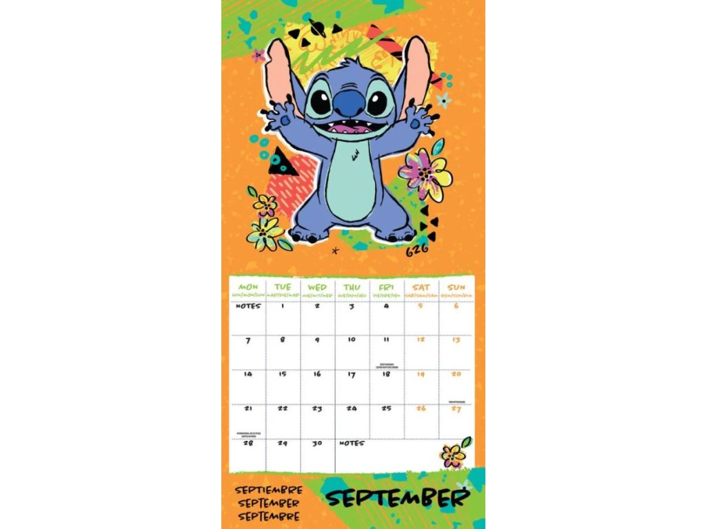 Oficiální produkt - kalendář na rok 2026 z katalogu výrobků s licencí a grafikou animované pohádky Lilo & Stitch od společnosti Disney.