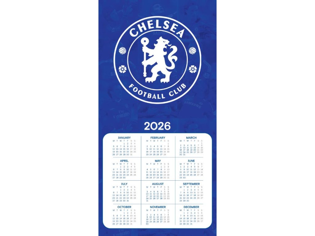 Oficiální produkt - dvanáctiměsíční nástěnný kalendář populárního fotbalového týmu FC Chelsea.