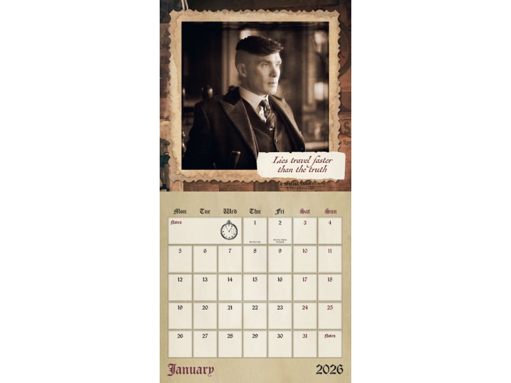 Oficiální produkt - nástěnný kalendář studia Netflix na rok 2026 s licencí TV seriálu Peaky Blinders/Gangy z Birminghamu.