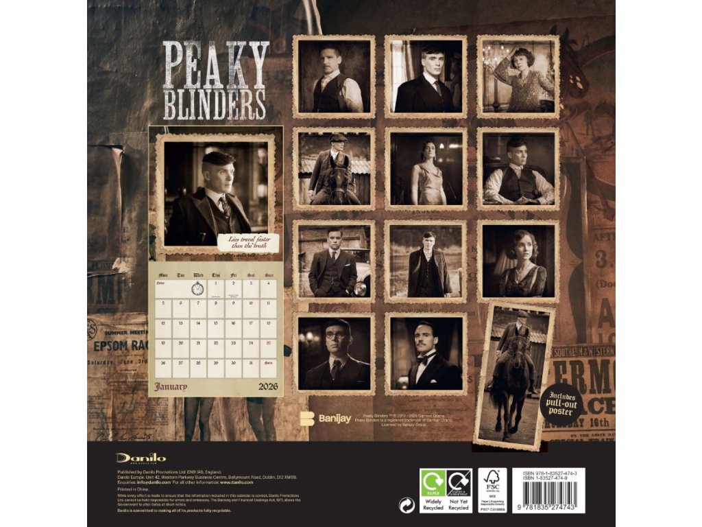 Oficiální nástěnný kalendář 2026 Gangy z Birminghamu | Peaky Blinders s plakátem (SQ 30,5 x 30,5 | 61 cm)
