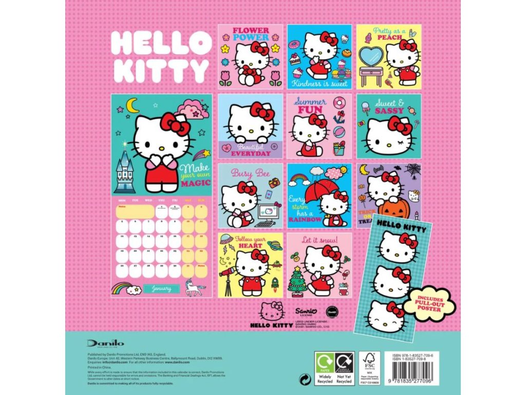 Oficiální nástěnný kalendář 2026 Hello Kitty s plakátem (SQ 30,5 x 30,5 | 61 cm)