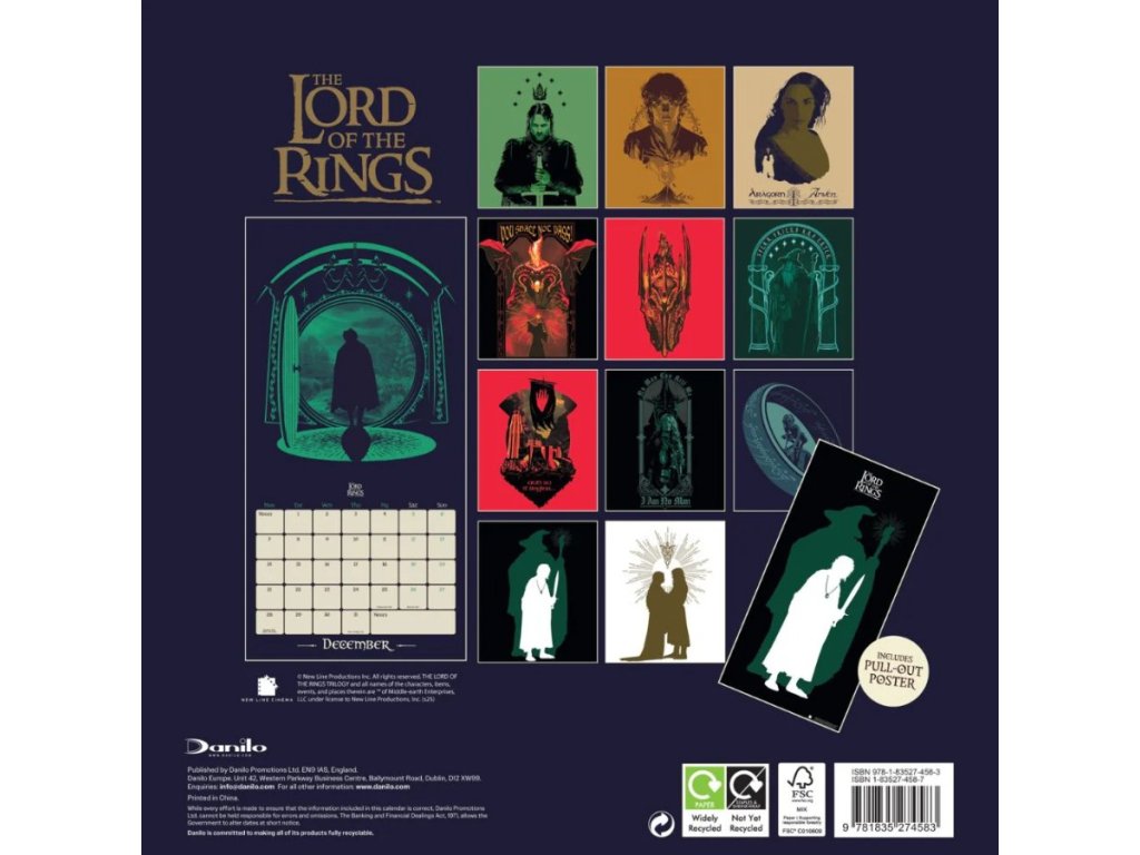 Oficiální produkt - dvanáctiměsíční nástěnný kalendář na rok 2026 s licencí filmové trilogie jménem Lord of the Rings (Pán prstenů).