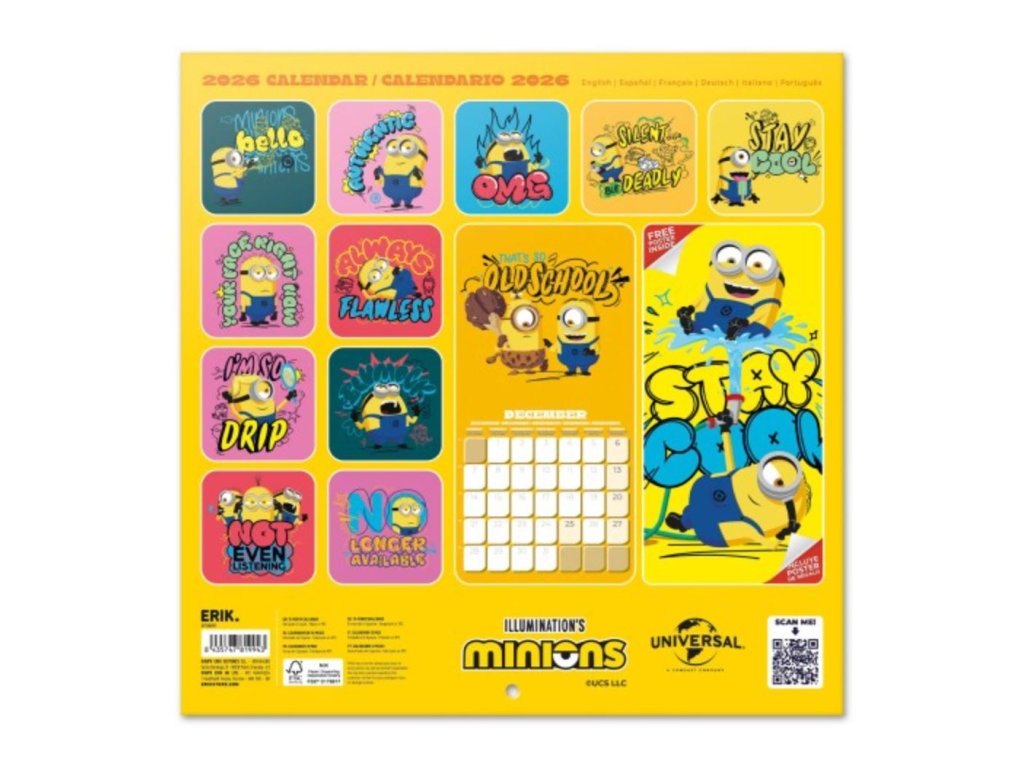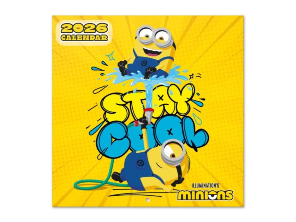 Oficiální produkt - dvanáctiměsíční nástěnný kalendář studia Universal na rok 2026 s licencí animovaného filmu Mimoni (Minions).