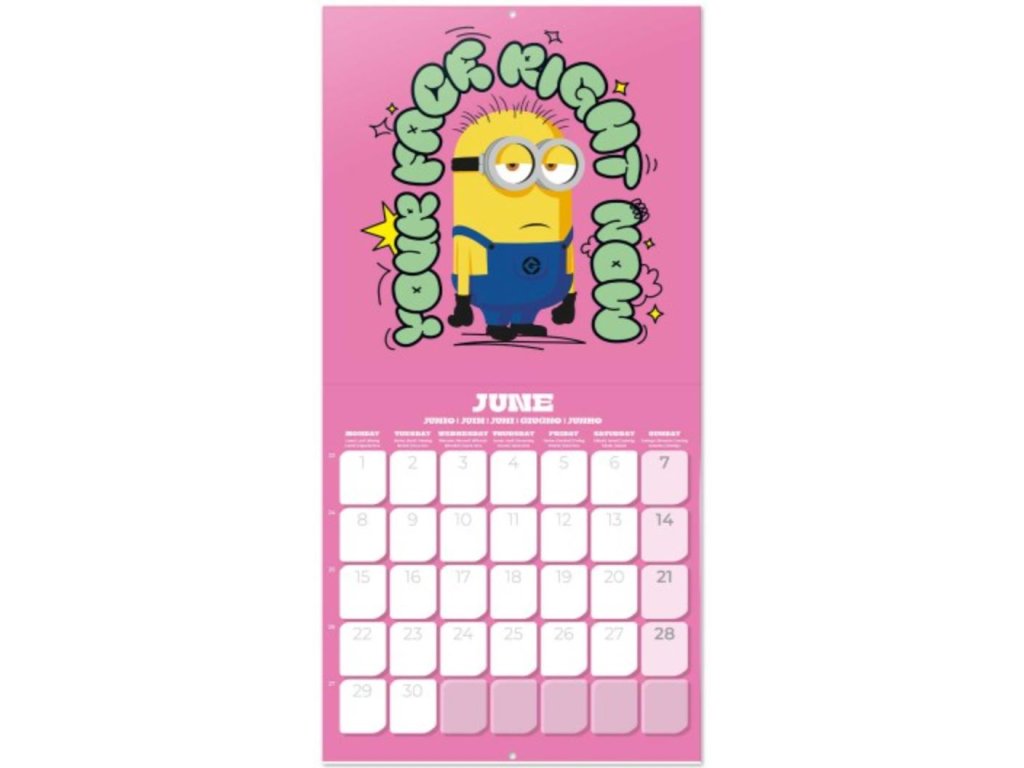 Dvanáctiměsíční nástěnný kalendář čtvercového square formátu (30 x 30 cm) s celkem 13 obrázky postav filmu Mimoni.
