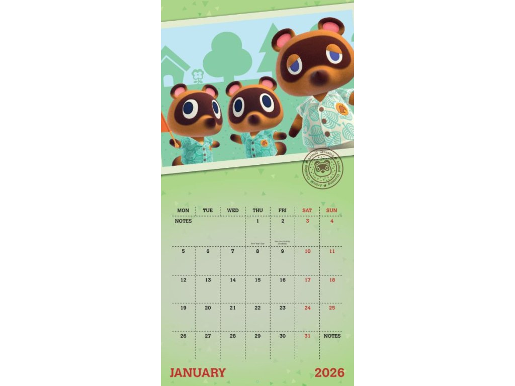 Oficiální produkt - nástěnný dvanáctiměsíční kalendář dětské počítačové hry Animal Crossing na rok 2026 s licencí společnosti Nintendo.