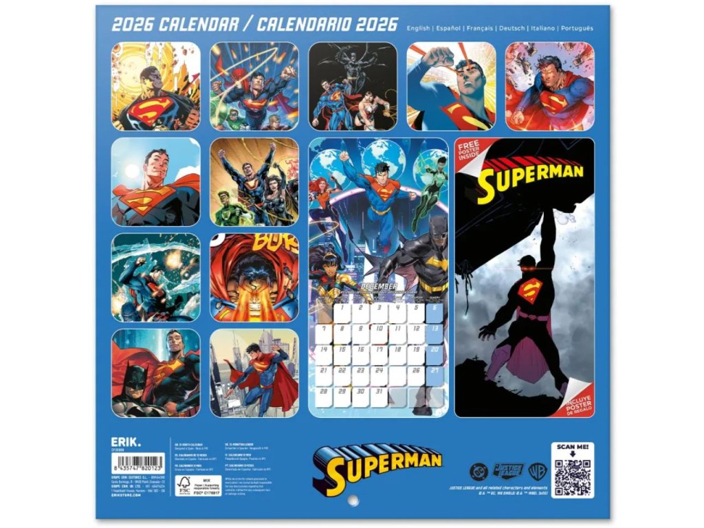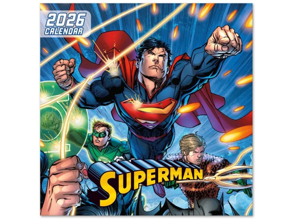 Oficiální produkt - nástěnný dvanáctiměsíční kalendář na rok 2026 s grafikou a licencí populárního superhrdiny Superman od komiksové společnosti DC comics.