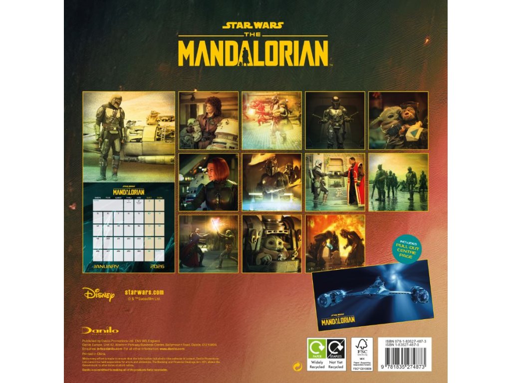 Oficiální nástěnný kalendář 2026 Star Wars | Hvězdné války: TV seriál The Mandalorian s plakátem (SQ 30,5 x 30,5 | 61 cm)